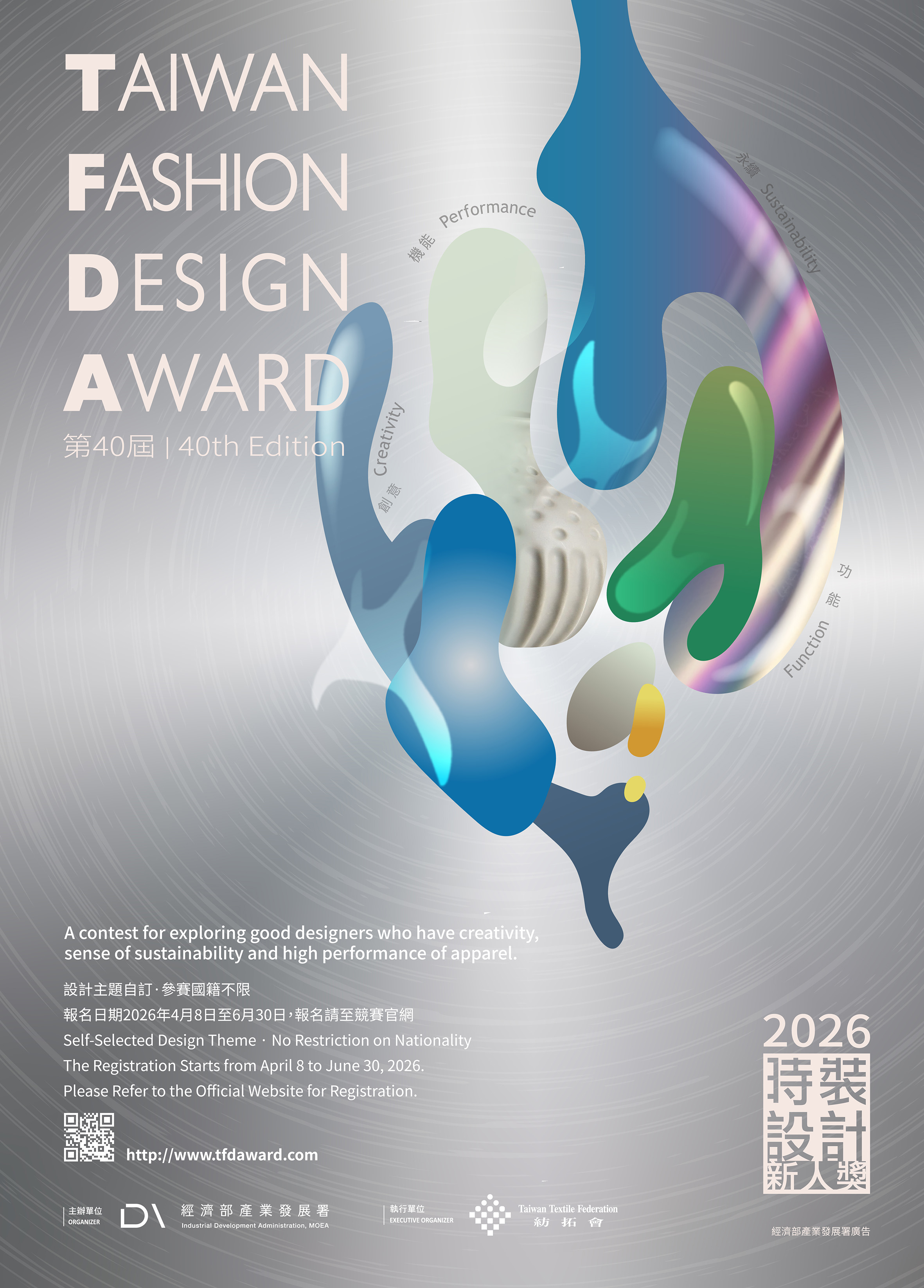 Launched in 1987 as a local competition, the Taiwan Fashion Design Award has grown into a prestigious event in the fashion industry. The 2026 edition marks its 40th year, making it the most historically significant official fashion design competition in Asia. Organized by the Taiwan Textile Federation and hosted by the Industrial Development Administration, Ministry of Economic Affairs, the competition first expanded to an international platform in 2013 during its 27th edition. The 2026 event will be the 14th international edition, continuing its legacy of showcasing talent from around the world. Each year, it draws over 600 participants, including students from fashion design programs at universities and colleges around the world, as well as new talents in design. So far, more than 15,000 people have participated, with 323 winners in total. The competition serves as a platform to encourage and discover talented local designers, helping them enter the industry. Over 90% of past winners have gone on to work in fashion-related fields, becoming important contributors to the industry. The long-standing success of this competition has helped drive the growth of the fashion industry and provided valuable opportunities for new designers to stand out in a competitive field.